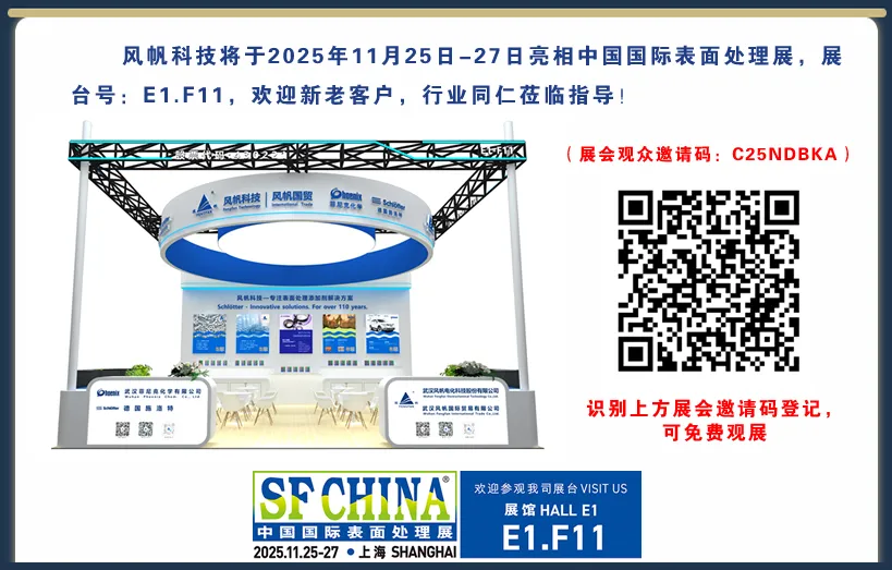On November 25, 2025, Shanghai New International Expo Center E1. F11 booth, Fengfan Technology is waiting for your arrival to this surface treatment industry event! (Scan the QR code in the picture above, free registration badge, exhibition visitor invitation code: C25NDBKA).